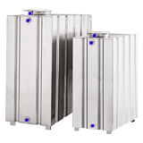 Serbatoi in acciaio inox orizzontali, verticali e parallelepipedo destinati al contenimento di acqua. Serbatoi in acciaio inox di capacità comprese tra i 125 litri, fino a 10000 litri. I serbatoi in acciaio inox generalmente sono provvisti di piedi di appoggio, passoduomo di ispezione, e bocchelli di servizio. Conformi al DM n° 174 del 06/04/2004, i serbatoi in acciaio inox sono i più durevoli per lo stoccaggio di acqua a pressione atmosferica.