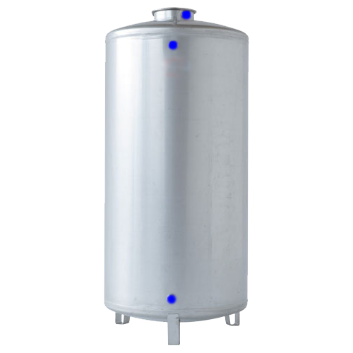 Serbatoio in acciaio inox verticale, di capacità pari a 2000 litri, completo di collegamenti filettati per gli allacci alla rete idrica. Serbatoio acciaio inox destinato al contenuto di acqua potabile conforme al DM n° 174 del 06/04/2004. La stabilità del serbatoio acciaio inox è garantita da piedi antirotolamento.